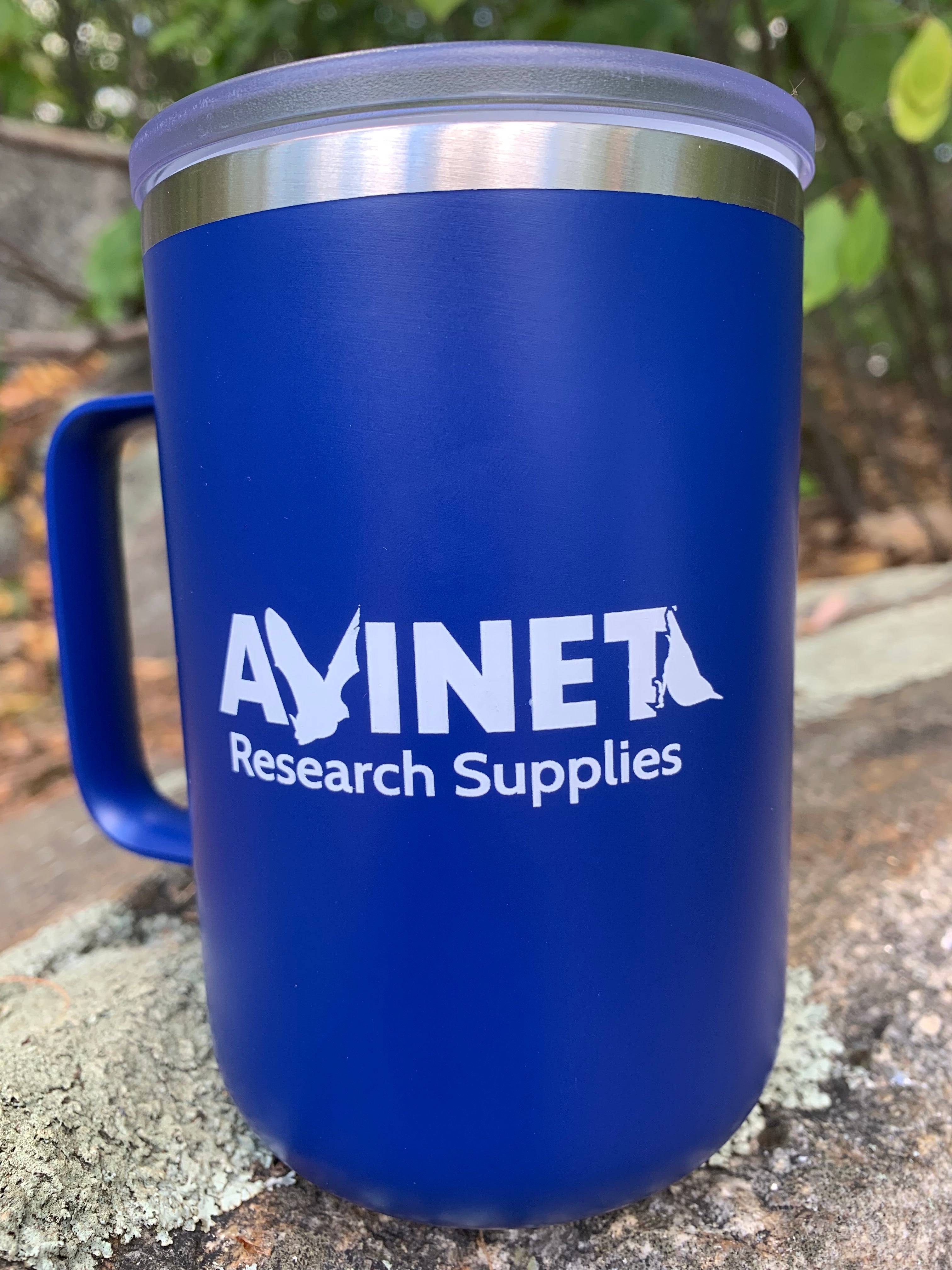 Whether you're having an early morning at the bird banding station, or a late night surveying bats, we all know that coffee is an essential field item. Carry your coffee (or any beverage!) in this branded 15 oz. classic camp style mug. Features a large handle, a screw-on top, and double-wall vacuum insulation to keep drinks hot or cold for hours.
